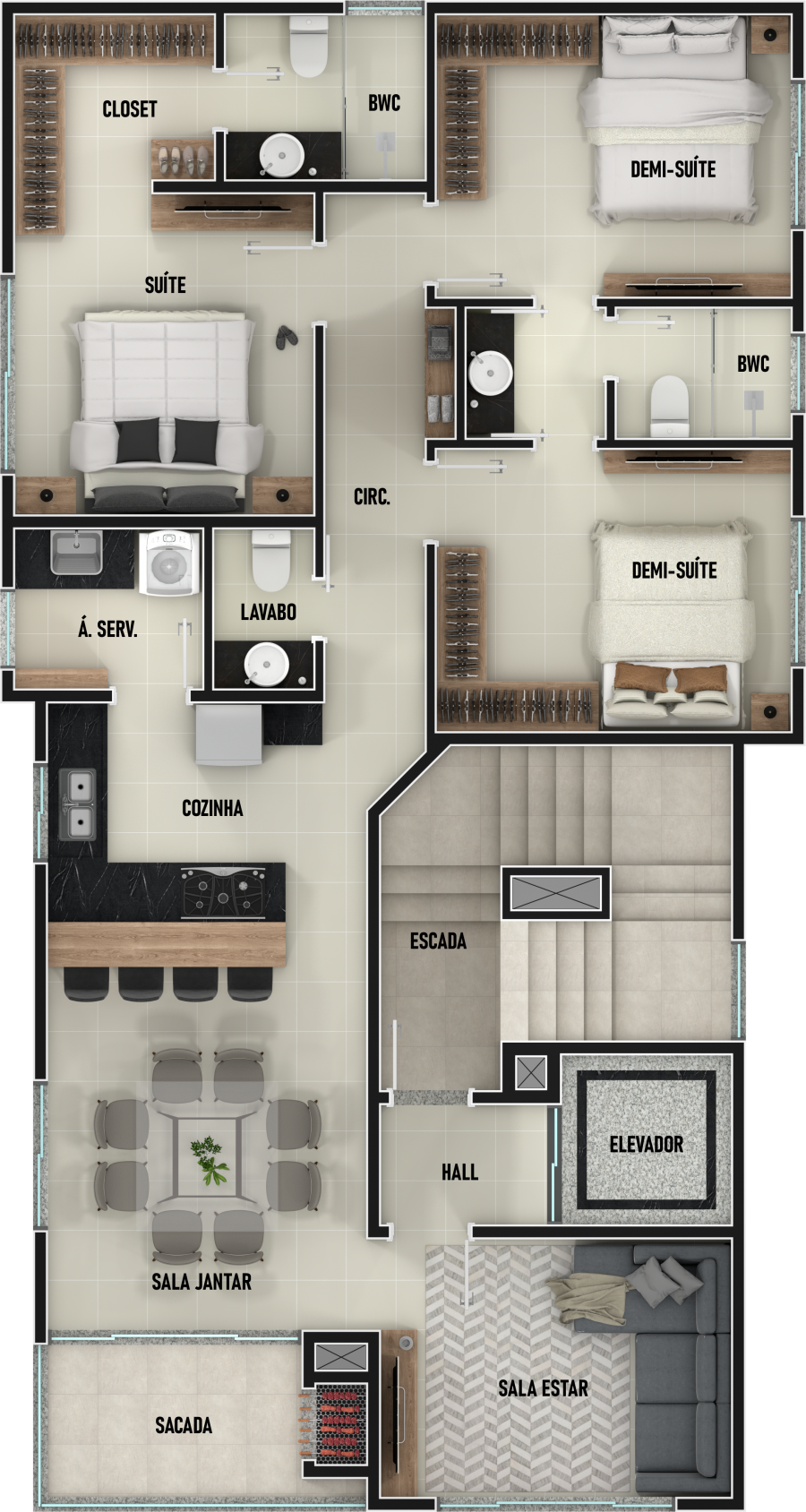 O Gravatá Exclusive é um empreendimento InBau que traz conforto, espaço e privacidade para seus moradores. Com apenas uma unidade por andar, os 7 apartamentos do Gravatá Exclusive contam com uma Suíte Master, duas Demi-Suítes, Cozinha Gourmet com Jantar integrado, a comodidade de um espaço único para a Sala de Estar, Área de Serviço, um Lavabo e Sacada com Churrasqueira, dispostos em aproximadamente 100m².