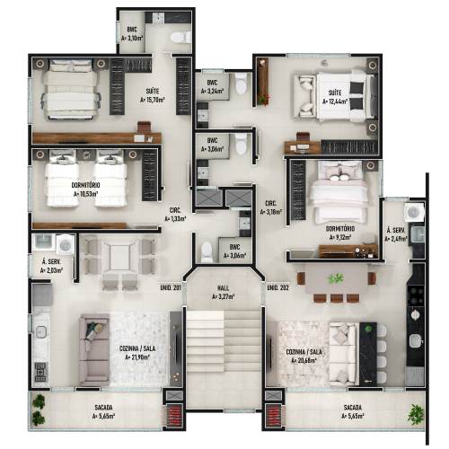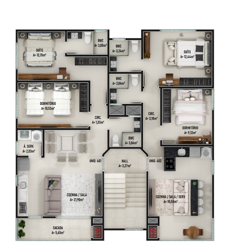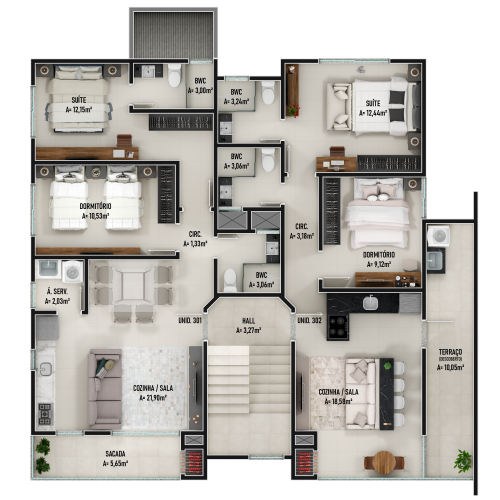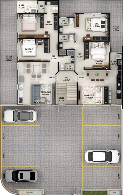 Edificado em quatro pavimentos, possui somente 8 unidades com acabamento diferenciado.